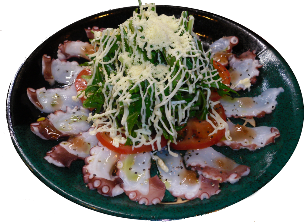 生蛸の薄造り(タコ刺し) ¥1800 生の活きタコを独自の仕込みでおいしい薄造りに仕上げました